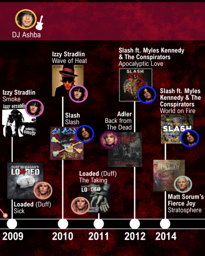 Luego de la grabación de Chinese Democracy, el guitarrista DJ Ashba formó brevemente parte de Guns n’ Roses, sin demasiada trascendencia.