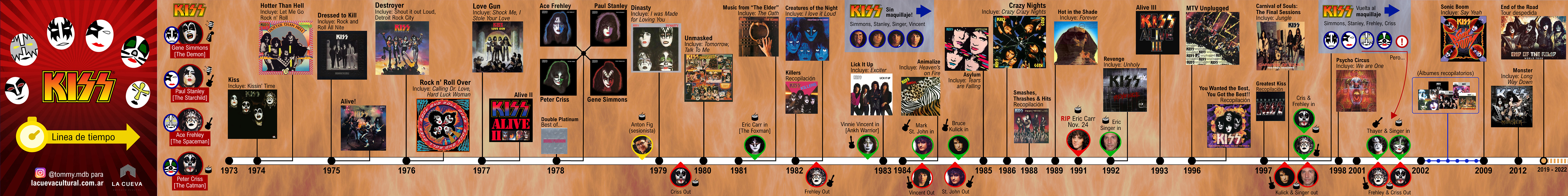 La trayectoria de Kiss fue orquestada principalmente por sus dos únicos miembros permanentes: el guitarrista y cantante Paul Stanley, y el bajista y cantante secundario, Gene Simmons. Ambos, junto al guitarrista Ace Frehley y el baterista Peter Criss, formaron en Nueva York en 1973, una de las bandas más reconocibles de la historia del rock. Aquí repasaremos su historia y diversos personajes enmascarados.