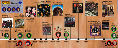 Entre 1984 y 1997, la banda continuó sin lo que había sido una de sus características más distintivas: el maquillaje. Ya a cara descubierta, Kiss se mantuvieron activos y lanzando material, aunque su éxito era menor. Quizás la canción más popular de esta época sea Crazy Crazy Nights, de 1986.