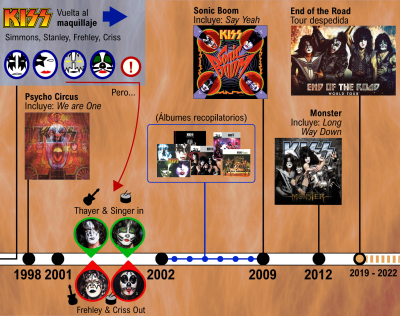 Con el lanzamiento del álbum Psycho Circus en 1998 la formación clásica de Kiss con maquillaje volvió a la actividad. En verdad, no se trató más que de una jugada de marketing: la participación del guitarrista Ace Frehley y del baterista Peter Criss en el álbum fue muy limitada. Al poco tiempo, tras recitales promocionales, ambos integrantes fueron desvinculados del proyecto.