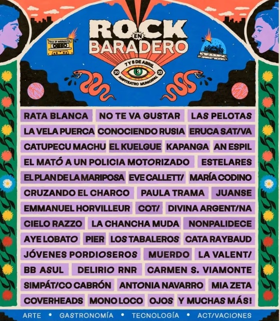 Por otra parte, habrá talentos under y músicos emergentes como Coverheads, La Chancha Muda, Delirio RNR, Mía Zeta, La Valenti, BB Asul, María Codino, Carmen Sánchez Viamonte, Divina Argentina, Eve Calletti, Cata Raybaud, Paula Trama, Antonia Navarro y los artistas locales Mono Loco, Aye Lobato, Simpático Cabrón y Ojos.